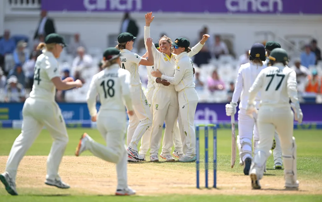 Australia bowler Ashleigh Gardner celebrates the final wicket of Danni Wyatt to win the match during day five of the LV= Insurance Women’s Ashes Test match.