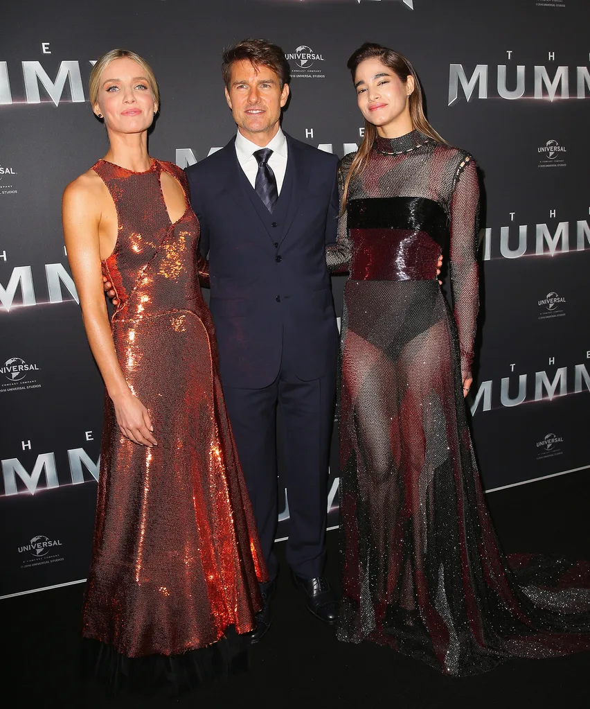 Co-stars Annabelle Wallis, Tom Cruise and Sofia Boutella cuddle up.
