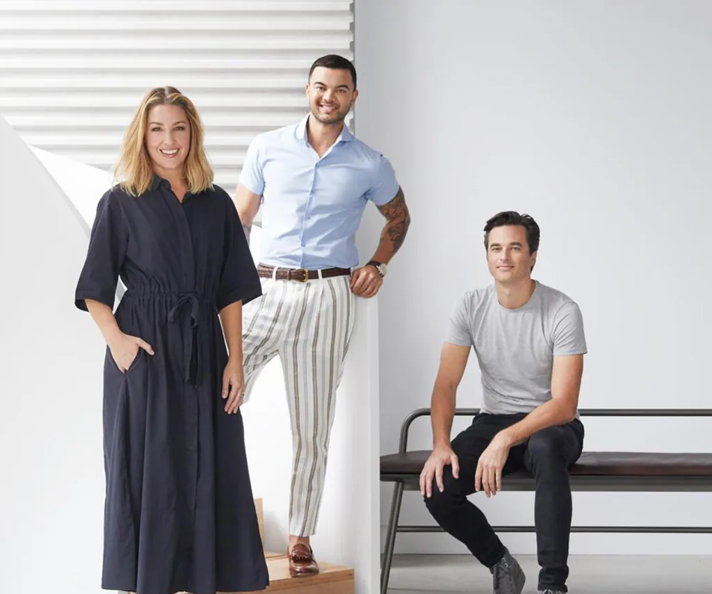 In the foyer, Jules and Guy Sebastian with architect Joe Snell of Studio Snell.