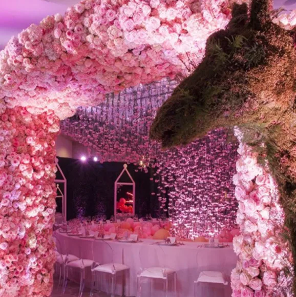 An archway of pink roses led guests into the spectacular dining area.