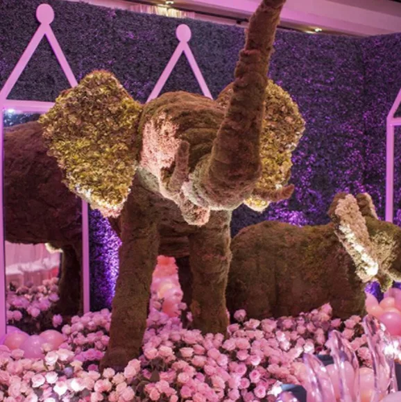 Hedges sculpted into elephants made a cute and fun backdrop for selfies.