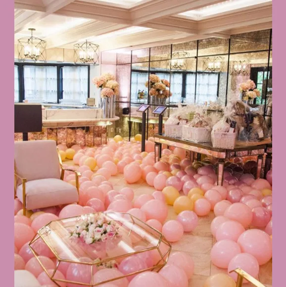 Hundreds of pink and peach balloons decorated the lavish Hotel Bel Air.