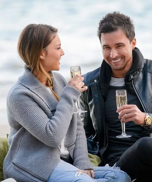 Alex Nation and Richie Strahan in happier times filming The Bachelor.
