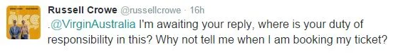 However, Crowe was caught unawares and has stated he would “never again” fly with the airline.