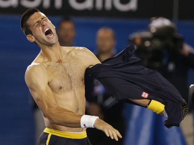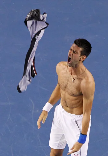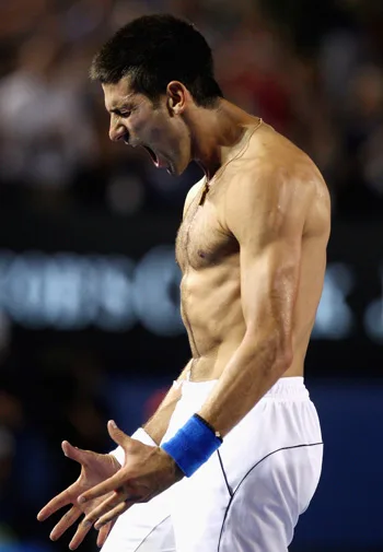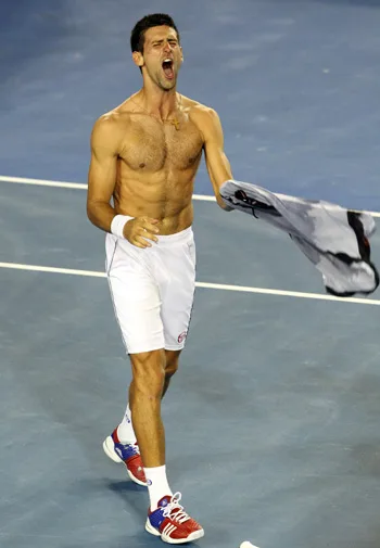 The Serbian ace ripped off his shirt to celebrate his victory in the fourth round of the men’s singles competition at the Australian Open, thrilling women around the world with his muscular physique.