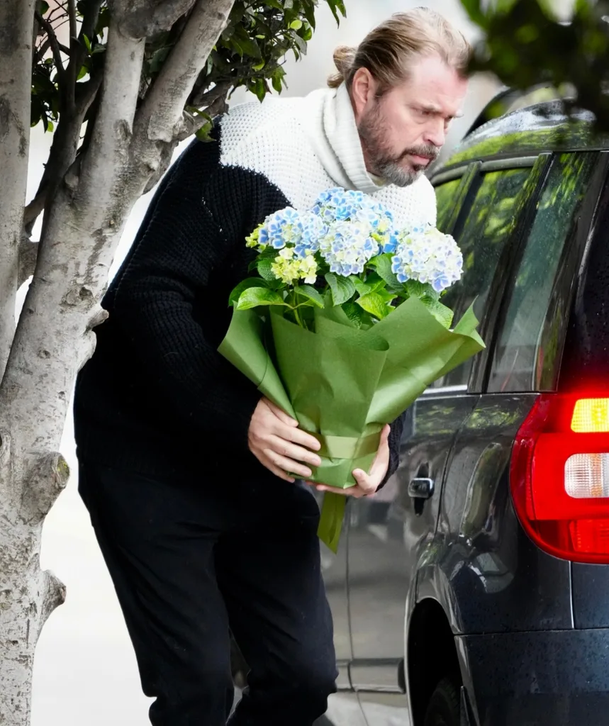 Shortly after, Mattias, 51, was seen arriving at her home – where he’s believed to also be living – with flowers, and was later seen speaking with Tina’s parents Giuseppe and Franca outside.