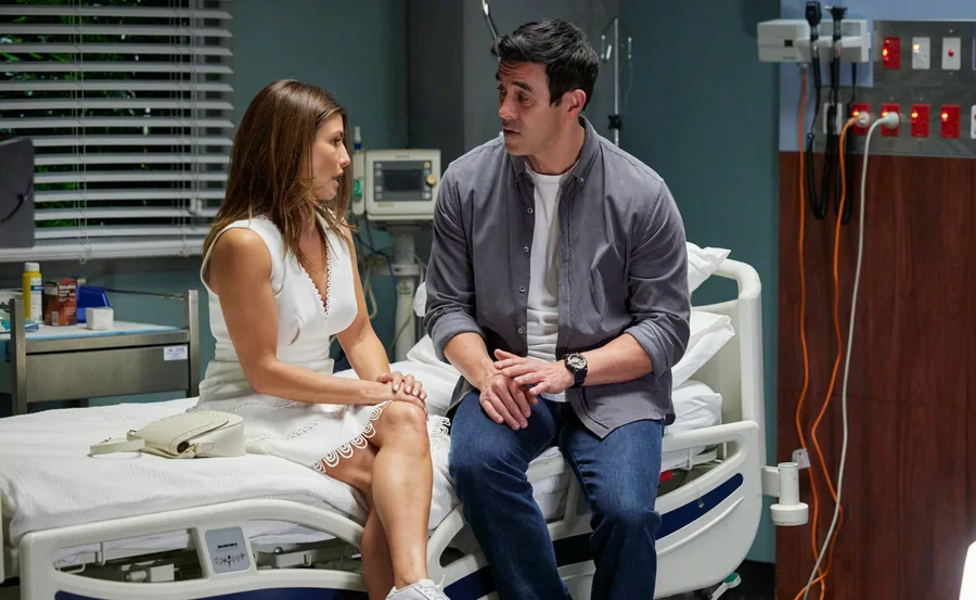In Home And Away, Leah (Ada Nicodemou) is guarded when Justin (James Stewart) arrives at the hospital. Policewoman Rose (Kirsty Marillier) is in the midst of questioning Leah, who insists she’s fine.
