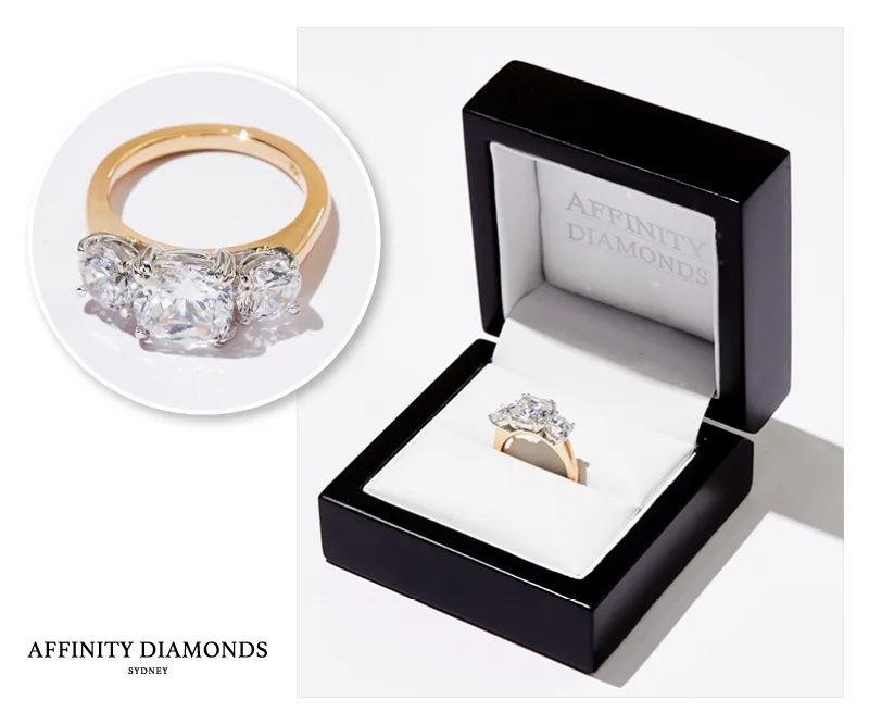 AFFINITY DIAMONDS 18k yellow gold trilogy ring is inspired by Meghan Markle’s magnificent diamond dazzler! Set with diamond simulants and handmade at the Affinity Diamonds Sydney Boutique, this ring will ensure your wedding makes the ultimate royal statement. In celebration of the Royal Wedding, AFFINITY DIAMONDS is offering Woman’s Day readers FREE engraving and complimentary VIP diamond education sessions for all AFFINITY DIAMONDS jewellery purchases made until the end of July 2018. To view AFFINITY DIAMONDS collections and enquire about the exclusive Royal Wedding Offering go to www.affinitydiamonds.com.au