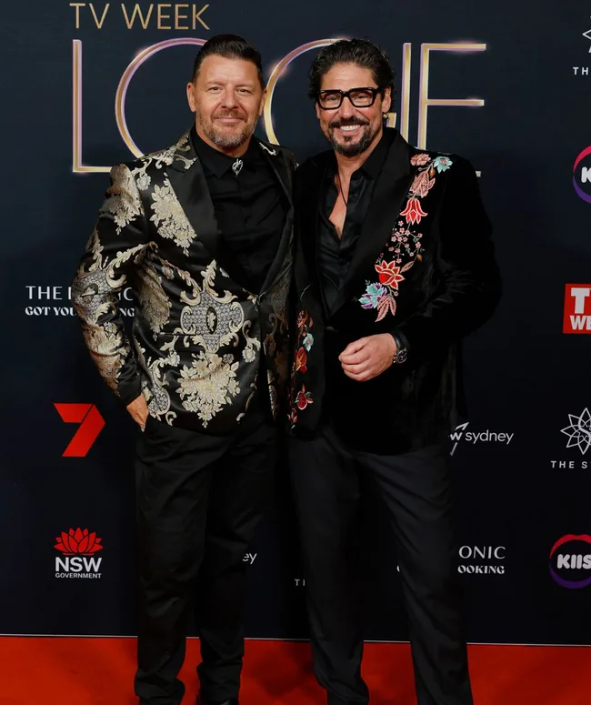 My Kitchen Rules judges and good friends Manu Feildel and Colin Fassnidge looked suave in their patterned suit jackets.