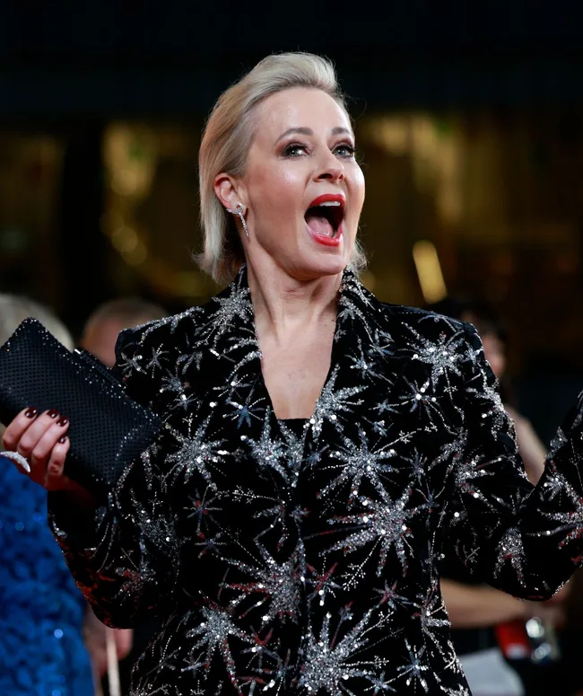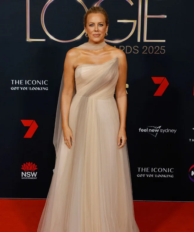 The Golden Bachelor host Samantha Armytage looked beyond glamorous in this beige tulle number.