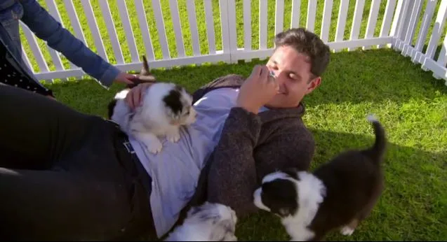 Apollo and Sophie then do a little DOGA (that’s doggy yoga) and once again I’m led to believe that Network Ten has slashed the date budget.