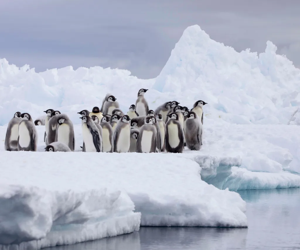 Waiting for the moment Emperor penguin chicks take to the water for the first time.