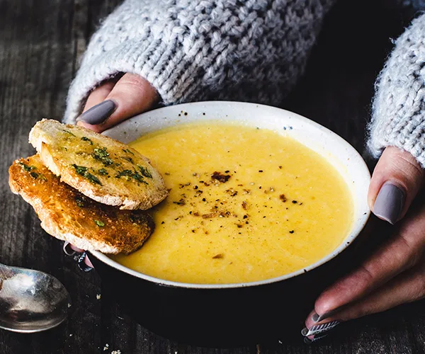 Because cream-based soups tend to be more calorically dense than broth-based options, opt for the latter to max out on this benefit. A mineral and nutrient-rich warming broth is also great for extra energy.