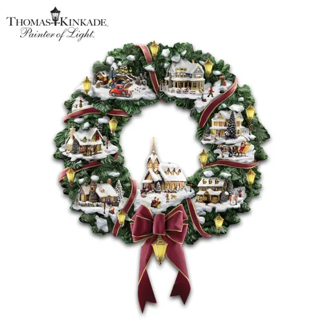 Make your festive season even more fun with this exclusive limited edition Thomas Kinkade Christmas wreath. It features 3D scenes, 7 glowing buildings, 11 lanterns and 20 figures. Sure to get everyone in the spirit!