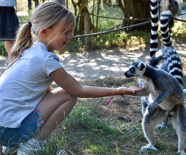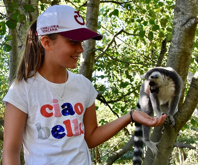 Princess Josephine, seven, feeds a friendly lemur at the safari park.