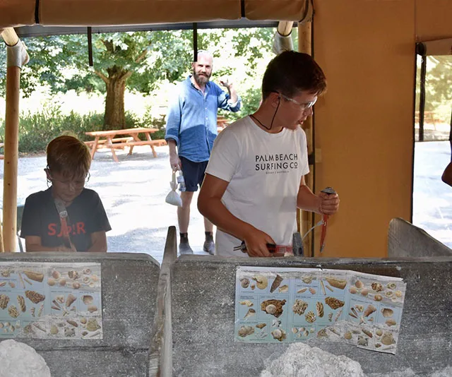 Like father, like son! Prince Vincent also takes a keen interest in the prehistoric creatures.