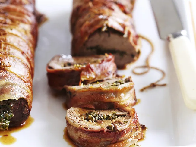 Barbecued veal fillet with salsa verde stuffing: Blend up a delicious salsa verde and stuff into veal fillets for a winter warmer bursting with sizzling flavour.