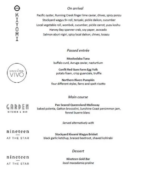 This is the exact menu that will be served on Logies night.