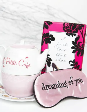 Le Petite Café set for one, $29.95, and I Just Love That Shoe book and cards set, $19.95, from Sussan. Annabel Trends eye mask, $10.50.