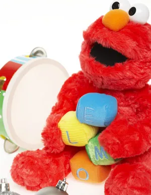Sesame Street Musical Elmo through Jasnor, $49.95. Tambourine, $12.50, from Jac’s Store.