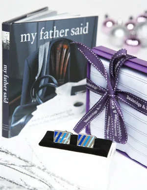 Baubridge & Kay cotton handkerchief, $16.50. My Father Said, $19.95, from Sussan. Malebox cufflinks, $49.