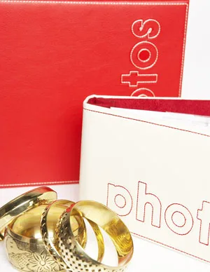 Metro Style photo albums, $29.95 (large), and $19.95 (small). Equip bangle with flower detail, $14.99. Diva bangles, $16.95 for set of three.