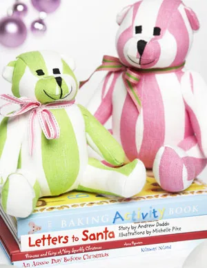 annieB’s teddy bears, $17.50 (small) and $24.95. First Baking Activity Book by Helen Drew, $19.95, available from Sussan. Letters to Santa by Andrew Daddo, rrp $19.99, Princess and Fairy: A Very Sparkly Christmas by Anna Pignataro, rrp $19.99, and An Aussie Day Before Christmas by Kilmeny Niland, rrp $14.99, all available from bookstores.