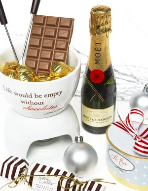 Moët & Chandon Brut Impérial, 200ml, rrp $29.95, from good liquor outlets. Jessica Walker Handmade Chocolates Signature Collection Chocolate Fondue Set, $15, and Signature Truffles Single Christmas Cracker, $2. Leona Edmiston for Jessica Walker Handmade Chocolates Luxury Collection chocolate box, $6, available exclusively from Myer.