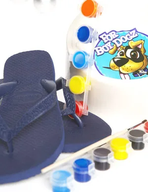 Havaianas Kids thongs from Jac’s Store, $16.95. Colorific Pawz on Parade Bowl For Boy Dogz craft kit, $19.95.