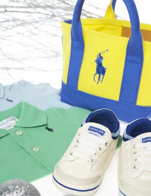 Dunlop My First Volleys, $15. Polo Ralph Lauren children’s tote, $49.95, and children’s polo shirts, $49.95 each.