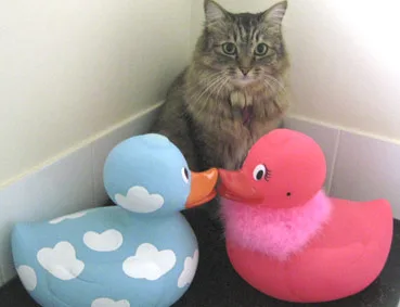 Our cat Pepper with two new friends!