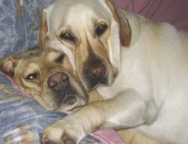 My two gorgeous girls Missy (black lab) Holly and (gold) were a surprise Christmas gift. They always sleep with one paw around the other … even though Holly snores louder than Dad!