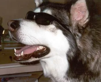 This is my Alaskan Malamute “Wolf”. He’s a very sunsmart dog, likes to wear his ‘shades’ during the hot weather in Mildura. He is very loved and very spoilt, he even gets an aromatherapy bath from ‘Aussie Pooch’ once a month.