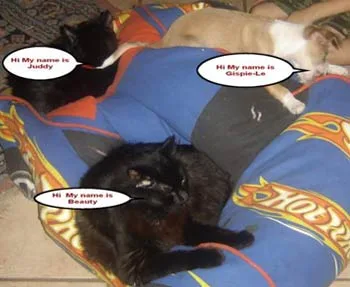 The children in my household thought you might like this picture of our very spoilt pets. Beauty is 2½ years old, Juddy is 1 year old and Gispie-Lee is 3 months old.