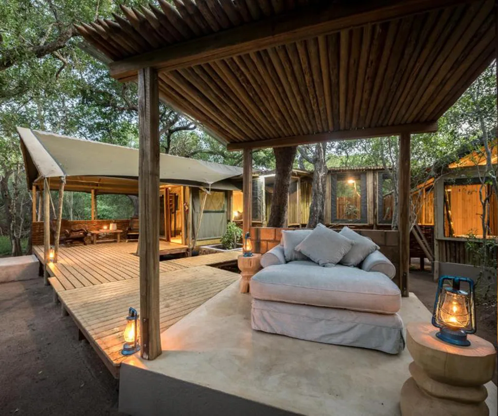 The stylish bush camp Bundox Safari Lodge, situated on a small nature reserve near the Kruger National Park, offers safari tents and thatched chalets.