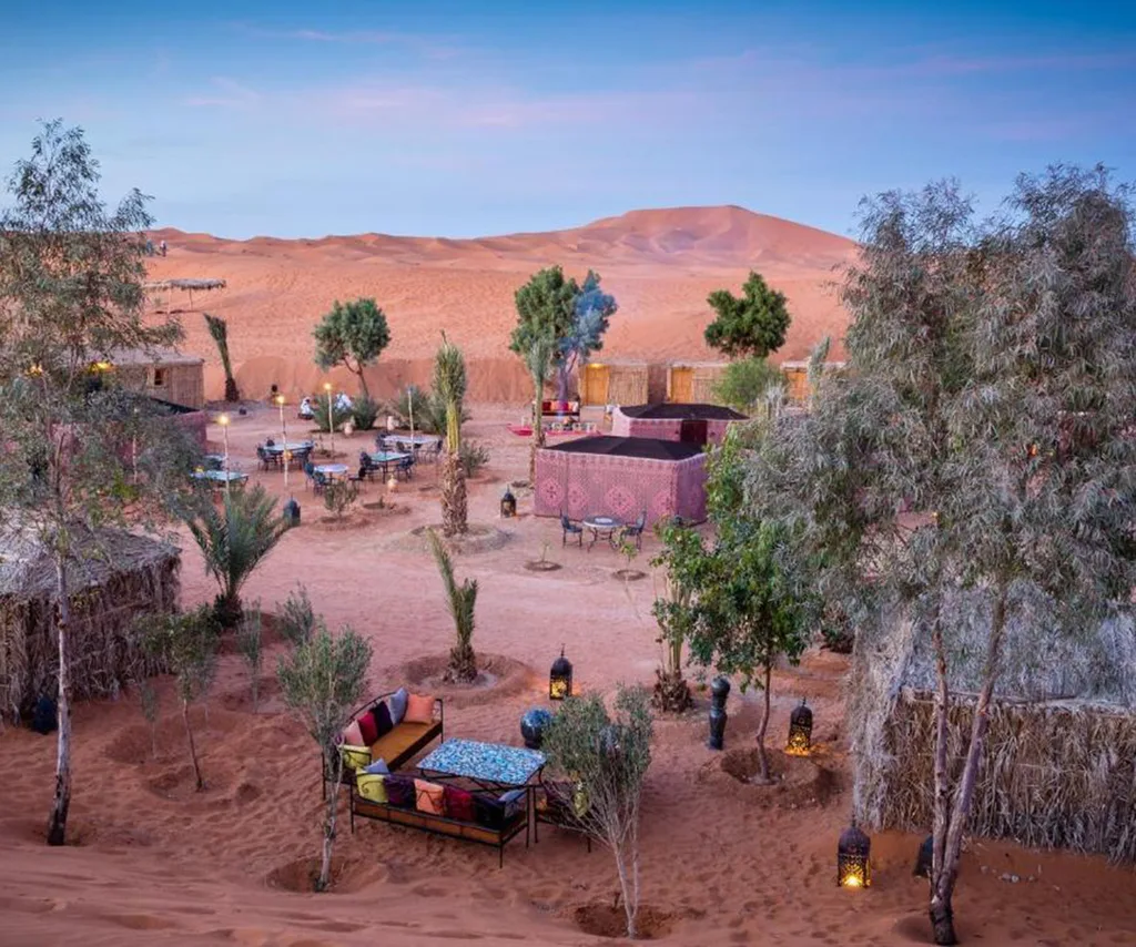 Ali & Sara’s Desert Palace camp is located just outside Merzouga in the Erg Chebbi dunes. The vibrantly colourful tents are traditionally decorated with local handcrafted items for an authentic feel and reflection of the local culture.