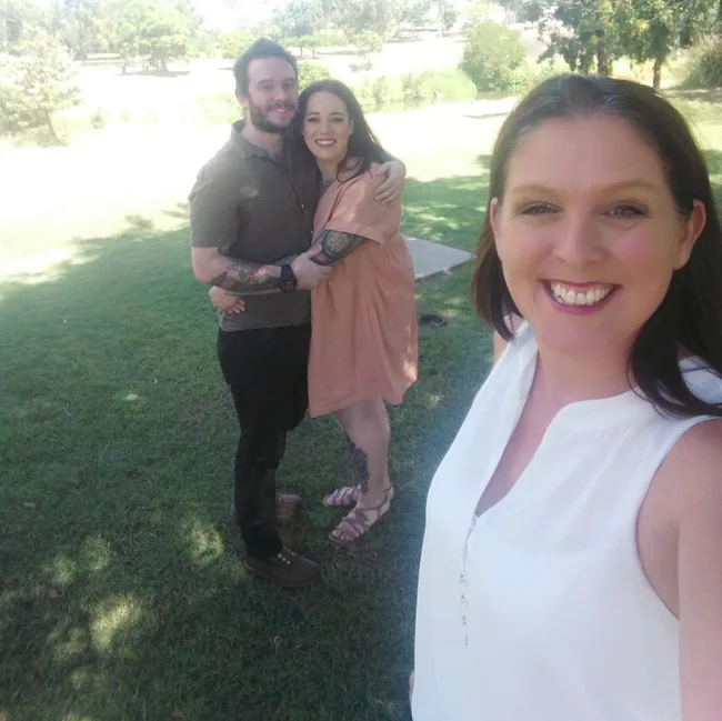 Celebrants like Brisbane’s Ketrina Coffey are still marrying couples in social distancing ceremonies in locations like parks. Newlyweds Emma and Ben (pictured) had their mums as their witnesses, aww!