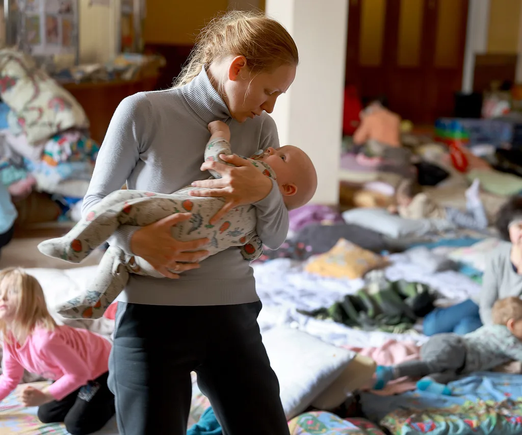 Women and children fleeing the invasion spend days in underground bunkers in an effort to avoid the shelling.