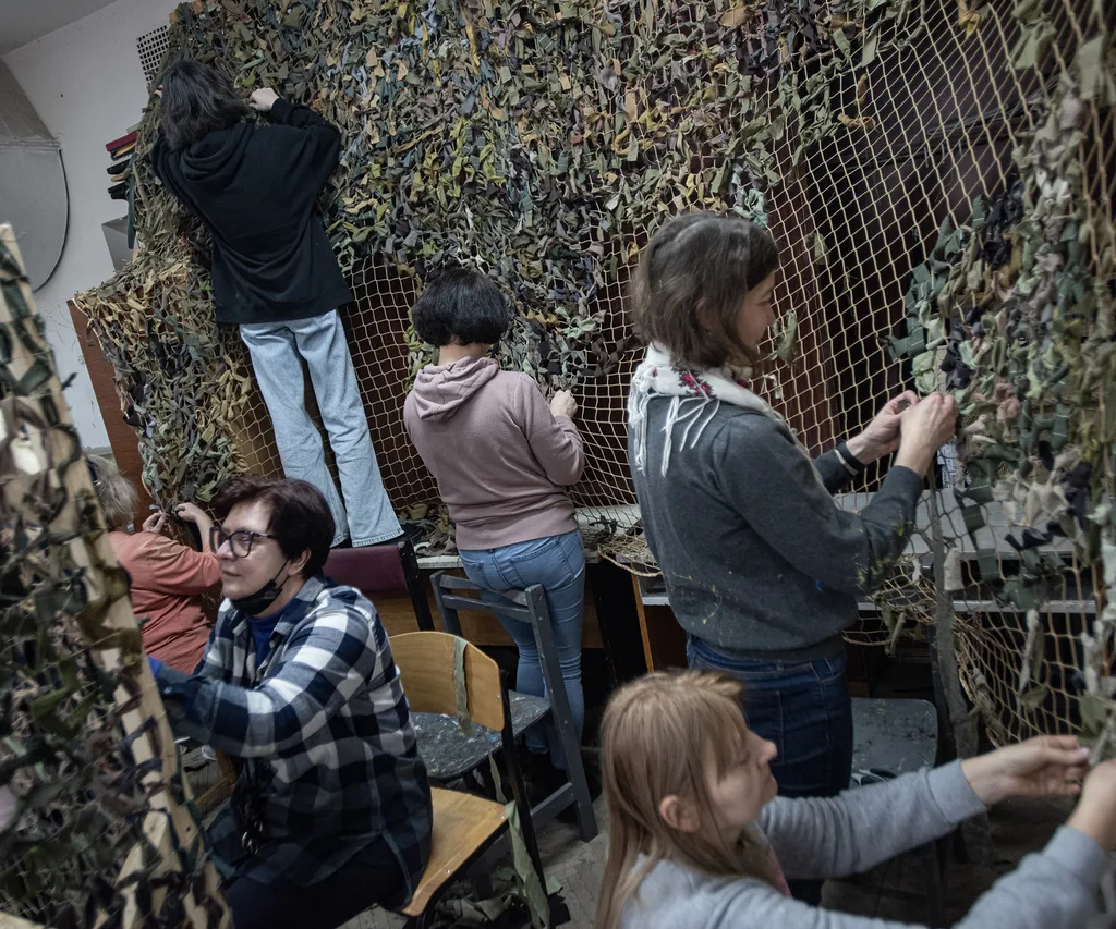 “We make roughly 40 nets a day and the soldiers come and either pick them up or arrange the transportation to send them to the frontlines,” she says. “I’ve never done anything like this before, but like all the people here, I want to do whatever I can to help. I believe victory will be ours.”