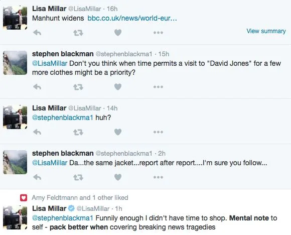 Lisa Millar has responded perfectly to criticism about her choice of outfit while reporting on the Paris attacks.