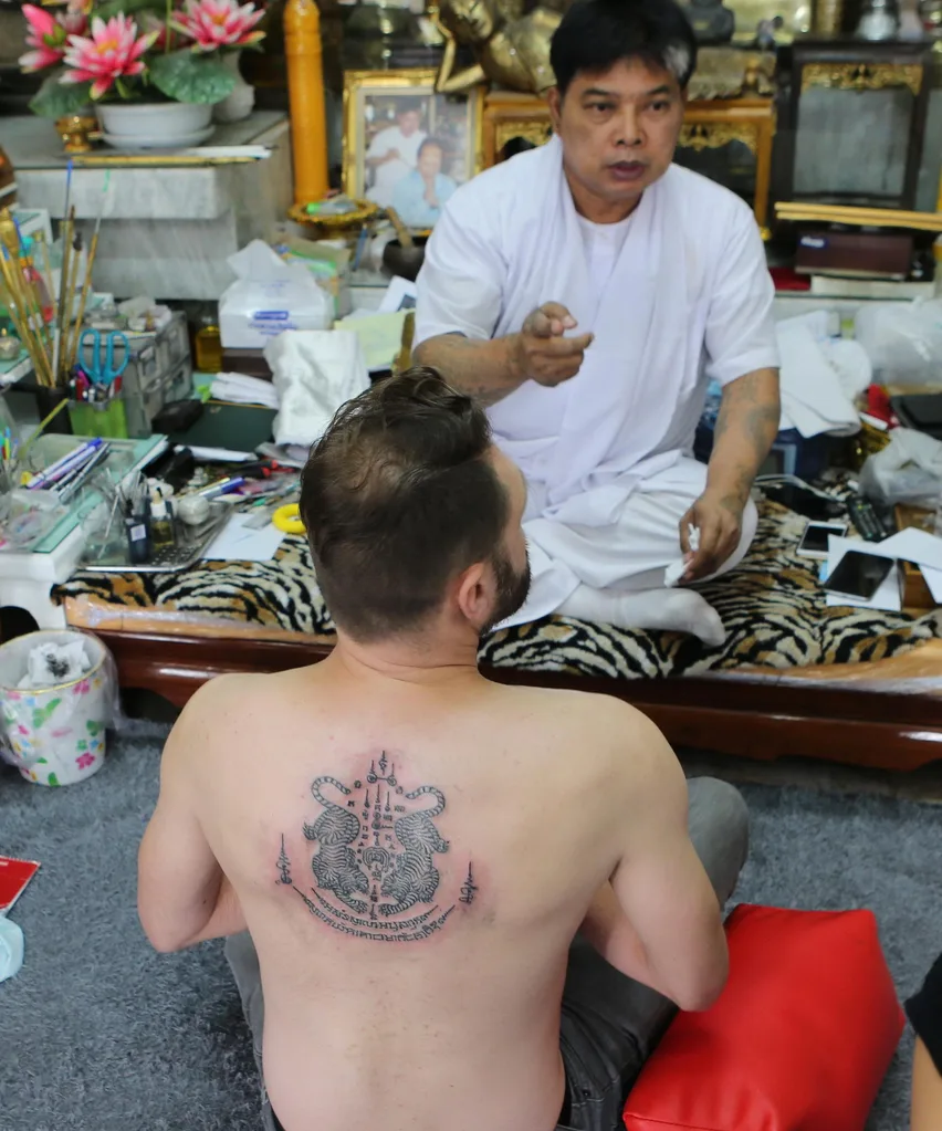 All the other people who were there were Thai. Some had travelled for a few hours to meet Ajarn Noo, and even the youngest girls, barely in their 20s, didn’t flinch while being tattooed, so I had to “man up” and not look scared.