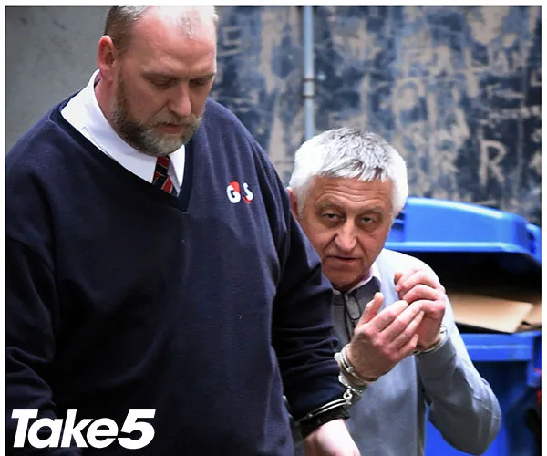 David being led away from court.