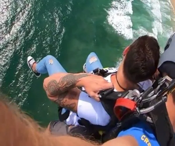 Luckily, we hadn’t seen any nude people below us as we parachuted down onto the sand that day.