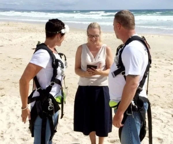 Ange waited on the beach with Heidi while Gav, Trent and I boarded the plane and prepared to plummet into our ceremony from 14,000ft above.