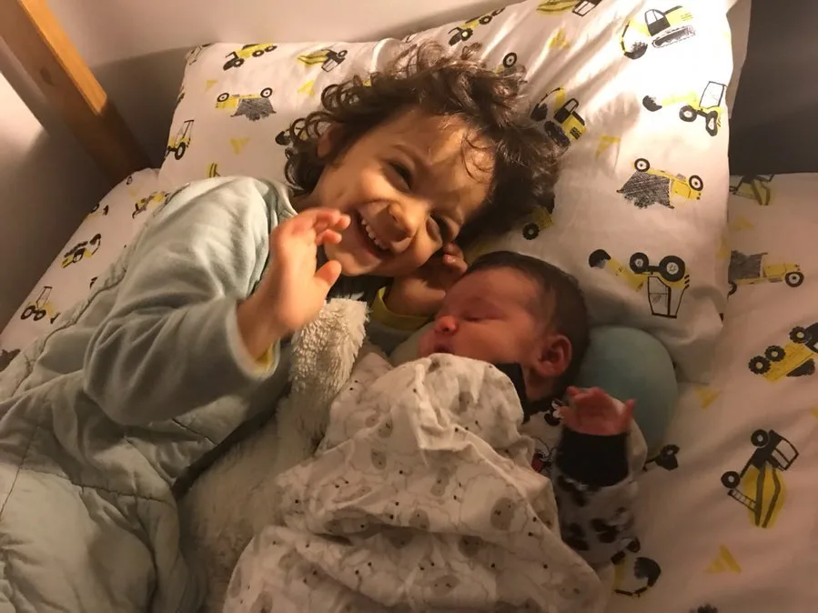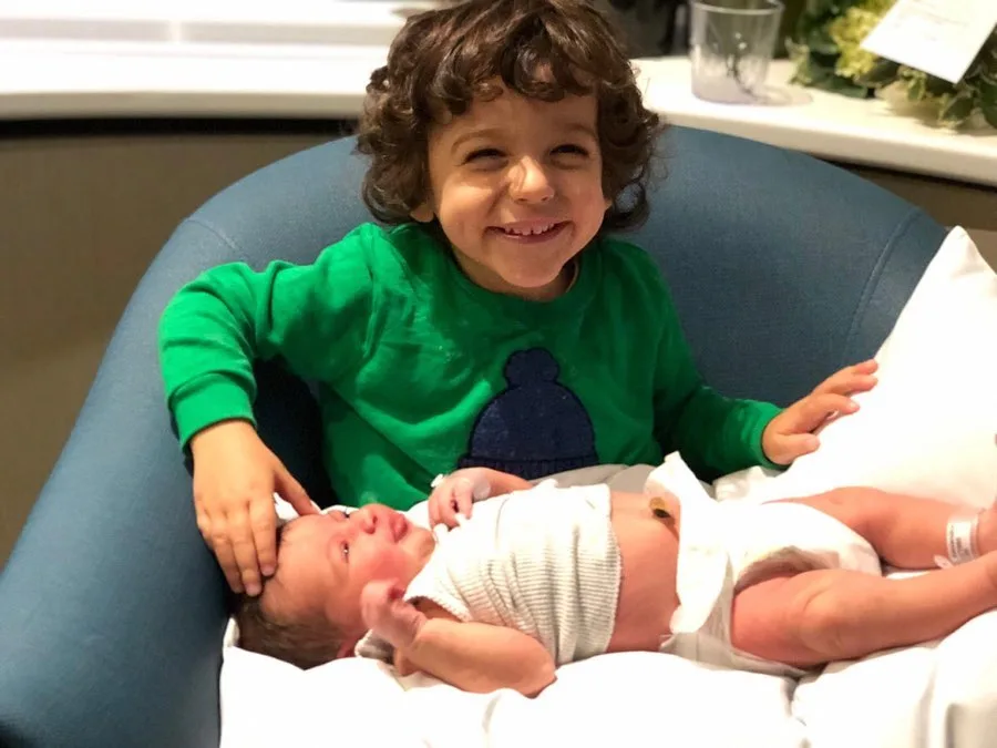 Rocco meeting his little sister Sohi. (Image: @gytongrantley/Instagram)