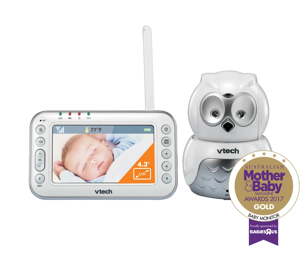 CATEGORY: MOST POPULAR BABY MONITOR The V TECH BM4500-OWL Safe & Sound Pan & Tilt Video Monitor, $250, features a sweet owl design that won’t look out of place in your nursery, a 4.3-inch LCD screen and a split screen capability. Also includes a temperature sensor, lullabies and two-way communication.