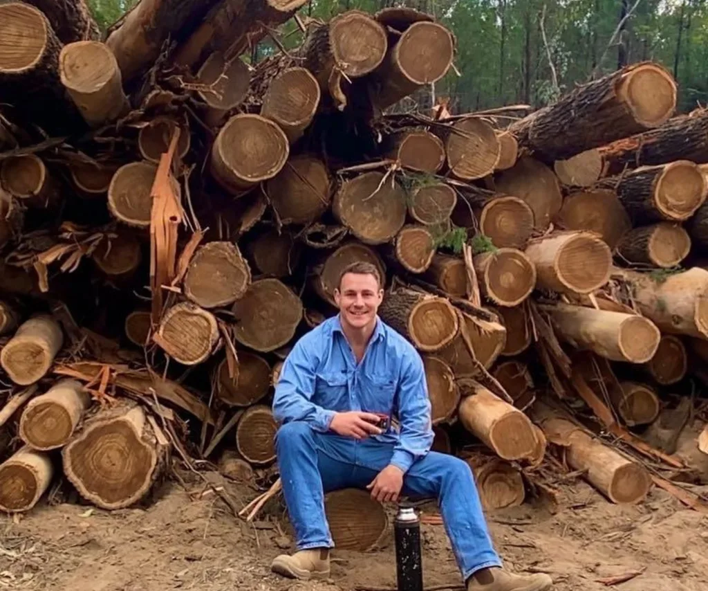 Following his football career, the regional Queensland-born Bachie is now a lumberjack looking for his “perfect” girlfriend.