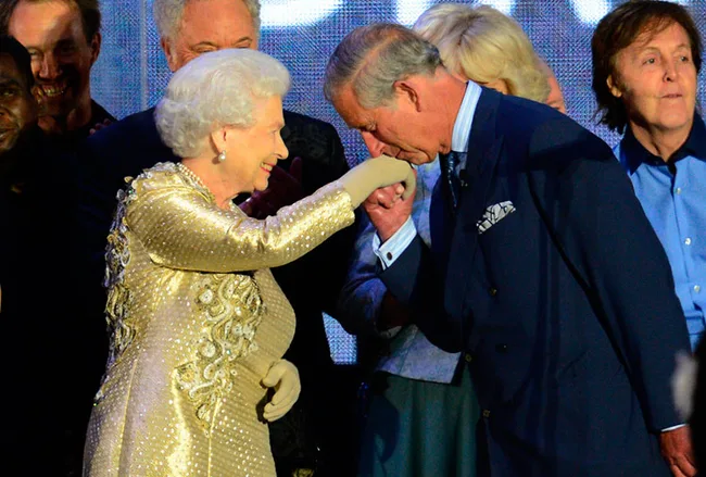 Prince Charles kisses the Queen on the hand following his heartfelt speech.