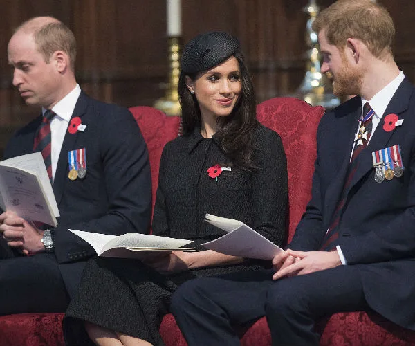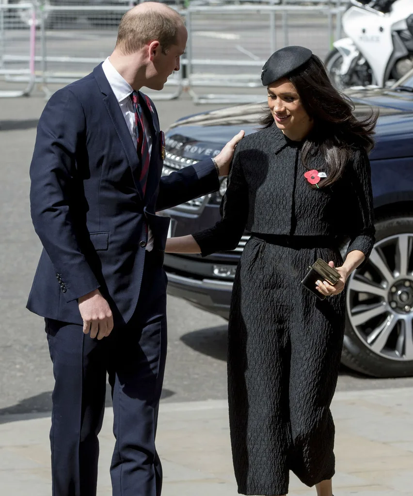 Prince William and Meghan Markle share a sweet moment at the Anzac Day Service of Commemoration and Thanksgiving at Westminster Abbey on Wednesday.