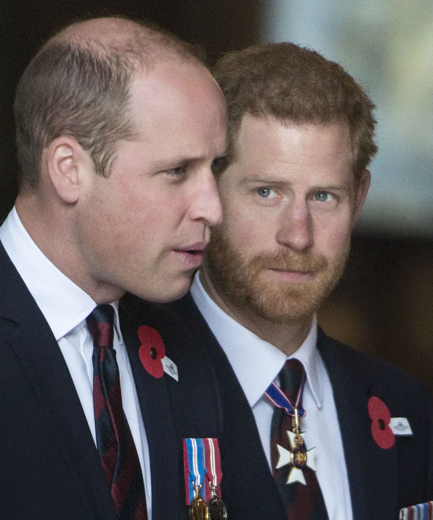 Prince Harry kept a watchful eye on his older brother as they chatted with guests at the sombre event.